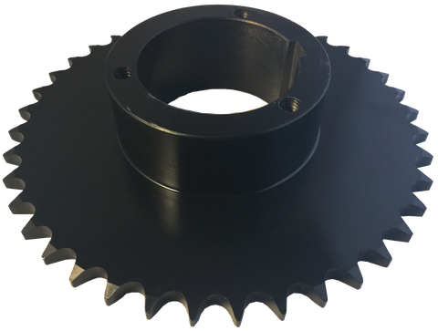 This sprocket drives #50 standard roller chain and features a split taper bushing. All of our sprockets are manufactured with hardened steel teeth to improve overall strength and prevent wear and tear on both the sprocket and the chain.