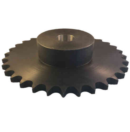 This Type B, minimum bore sprocket drives #80 standard roller chain. All of our sprockets are manufactured with hardened steel teeth to improve overall strength and prevent wear and tear on both the sprocket and the chain. CUSTOM BORING AVAILABLE - CALL 1-888-868-5891