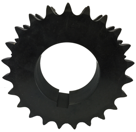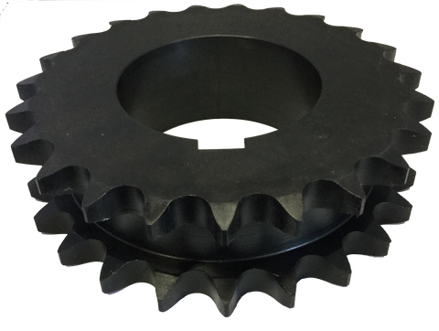 This double single sprocket drives #80 standard roller chain and features a split taper bushing. Double single sprockets are used in applications where one drive shaft powers multiple components. The distance between each strand of teeth is greater than that of a normal double sprocket. Each chain can also exit the drive in different directions. All of our sprockets are manufactured with hardened steel teeth to improve overall strength and prevent wear and tear on both the sprocket and the chain.